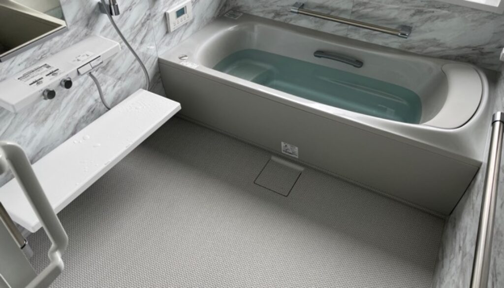 出入りしやすい片引戸、標準装備の「お掃除ラクラク人造大理石魔法びん浴槽」や「お掃除ラクラクほっカラリ床」でとても温かい空間となりました。