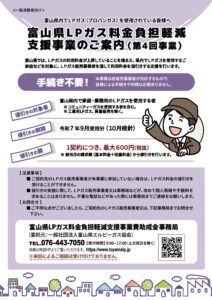 富山県LPガス料金負担軽減支援事業に参加致しています
