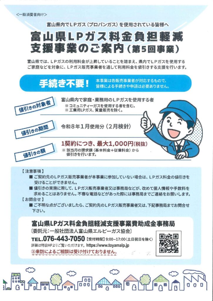 富山県LPガス料金負担軽減支援事業参加のお知らせ